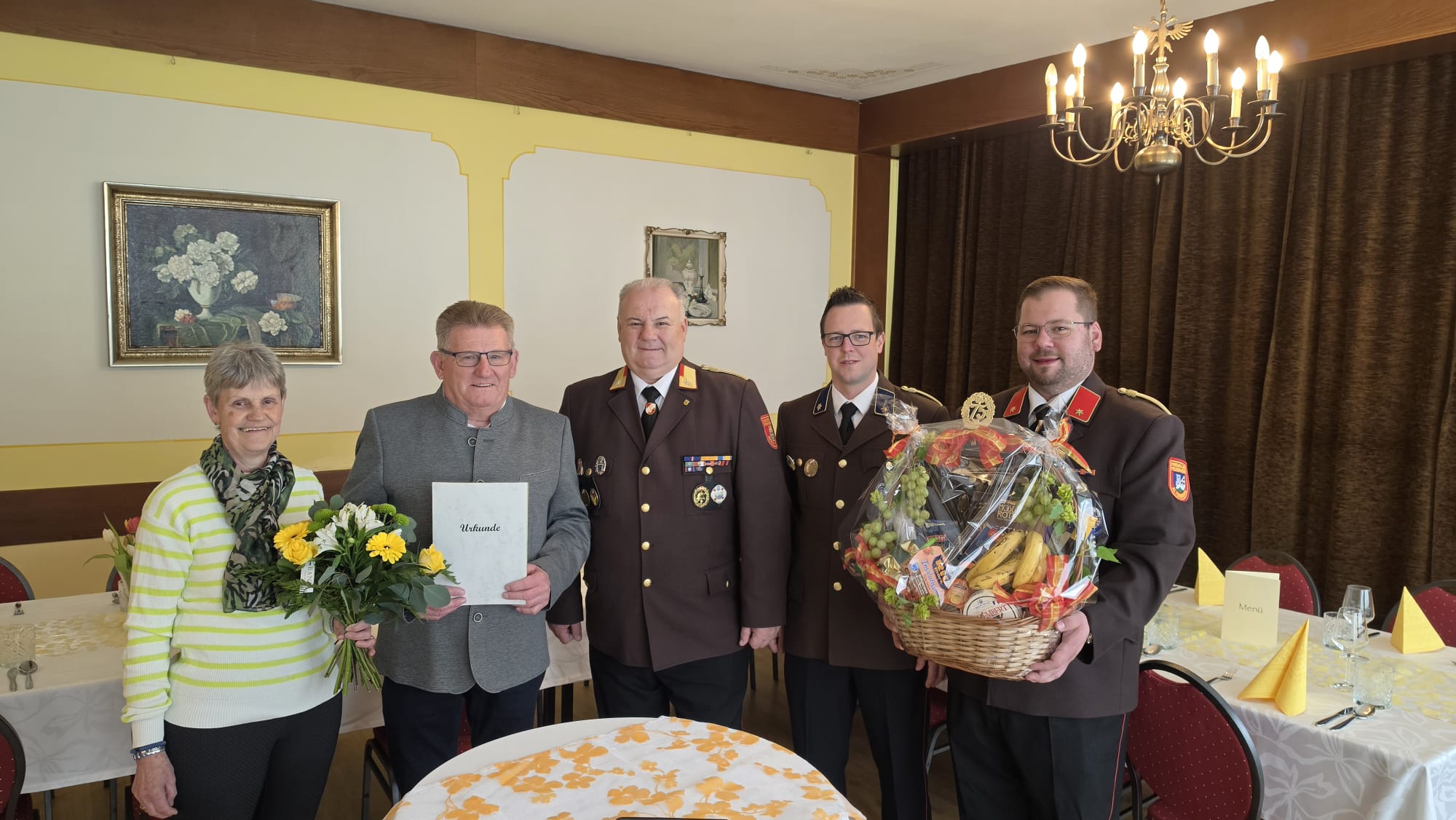 Das Kommando der FF Altenburg überreichte im Rahmen der Feierlichkeiten einen Geschenkkorb.