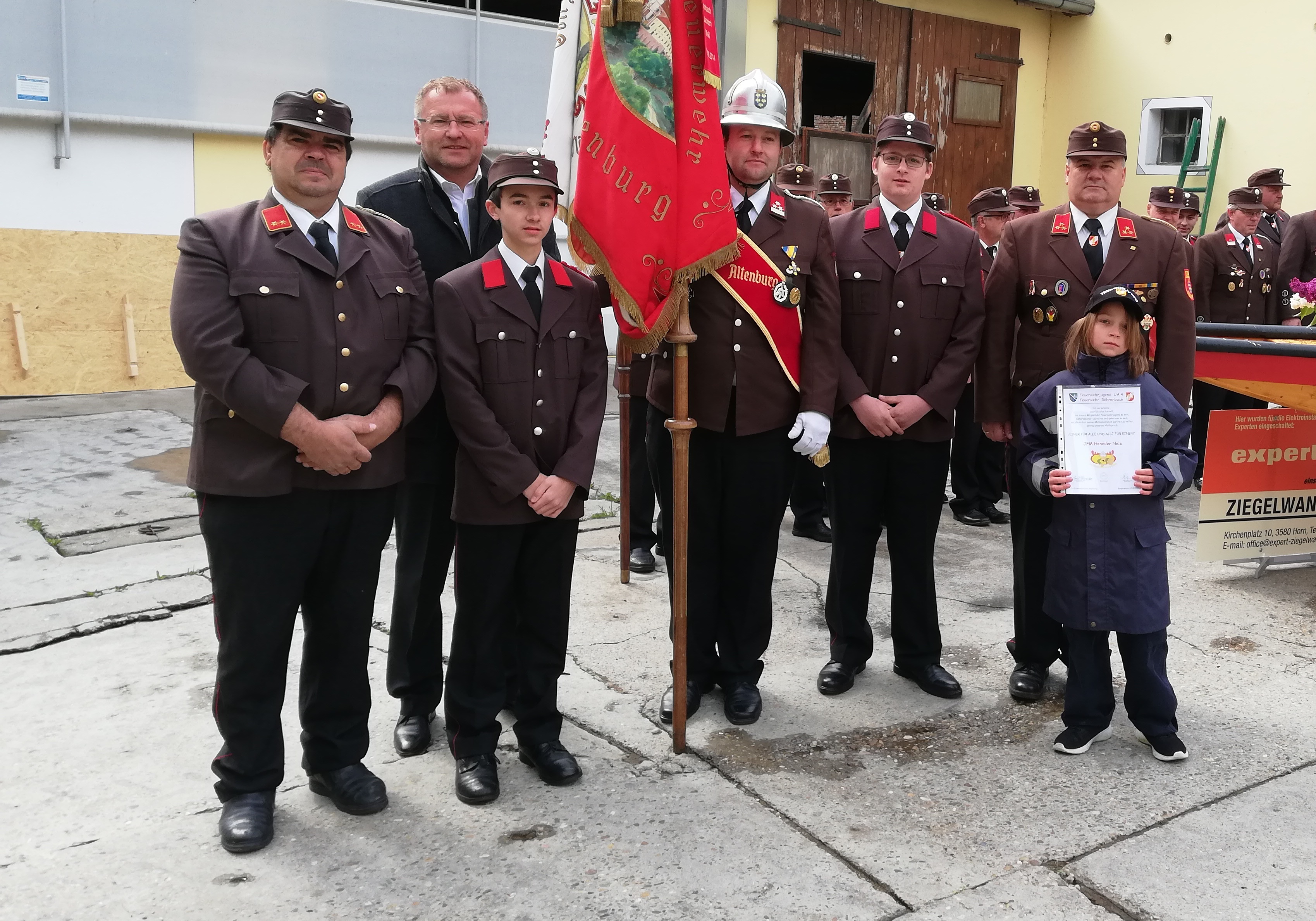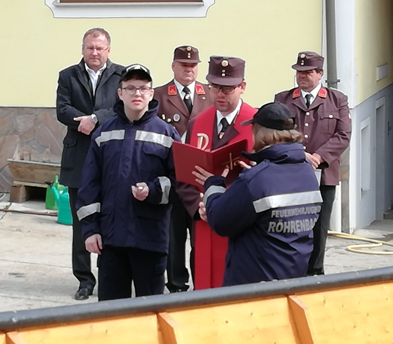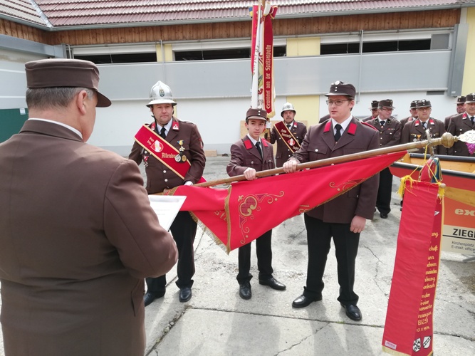Nach der Verlesung der Gelöbnisformel wurden in die Feuerwehr Altenburg Thomas Leopold und Bernhard Trauner sowie Nele Honeder in die Feuerwehrjugend aufgenommen. Anschließend spielte die Musikkapelle Altenburg zum Frühschoppen auf.